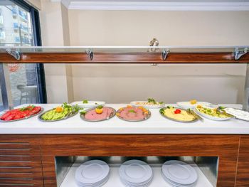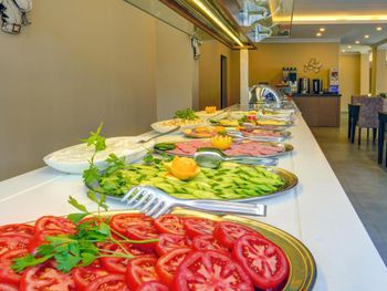 Включены вкусные завтраки, большой выбор сыров, оливок, всегда подавали фрукты, овощи, сладости (которые можно было взять с собой) + кофемашина с лате/капучино и тд, чай, разные соки. Рядом есть кафе с европейским меню и низкими ценами. В общем, возле гостиницы много магазинов и супермаркет по классным ценам.