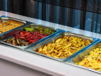 Завтрак шведский стол со средним, но вполне достаточным набором продуктов, правда с недостаточным контролем свежести молочных продуктов и поддержания ассортимента в течение всего завтрака.