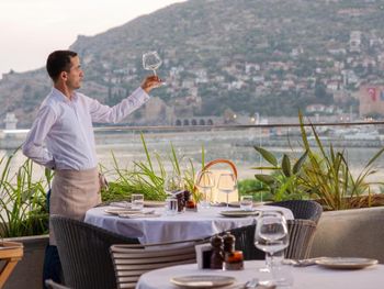 В непринужденной обстановке стильного ресторана отеля Alanya Buyuk можно отведать блюда турецкой и интернациональной кухни. Из больших окон ресторана открывается вид на море.