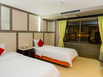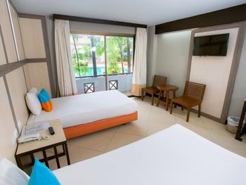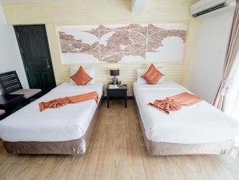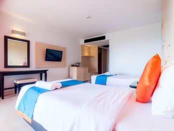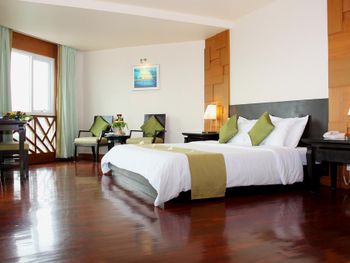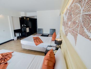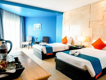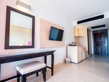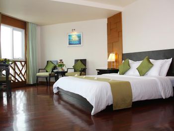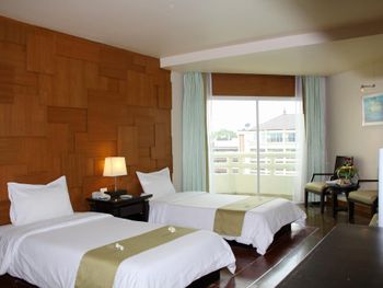 отель очень старый, отношение персонала никакое, в номерах нет сейфа, вся мебель и сантехника требуют полной замены. с потолка в номере капала вода. по всему потолку следы подтеков. освещения очень мало, как в погребе. в ванной нет даже душа на шланге, под потолком торчит из стены лейка, которая сильно бьет струями. ванна грязная, швы в плесени. слышимость соседних номеров колоссальная, можно слушать о чем спокойно говорят соседи. за доп детскую кровать запросили почти 70% стоимости номера за те дни которые там были, за доп 6 часов проживания в последний день запросили 80% стоимости суток. требуют залог 1000бат при заселении только НАЛИЧНЫМИ и ни в коем случае нелья потерять квитанцию, иначе не вернут залог. на завтраке кроме булочек и омлета детям есть нечего, напоминает плохой вариант египетского отеля, навалена куча всякой несъдобной ерунды. из фруктов был только арбуз, намного хуже чем можно купить в любой лавке на улице. матрасы и подушки на кроватях очень жесткие. интернет работает как лотерея. брали самый лучший номер из предложенных, люкс с видом на море.