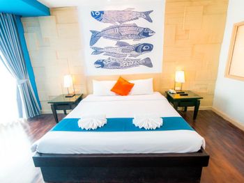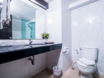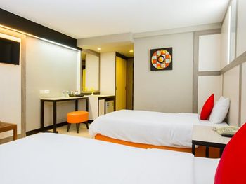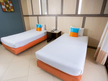 Фото на сайте при бронировании абсолютно не соответствовали реальному номеру. Ни интерьером, ни видом. Очень грязный номер. В первом номере на полочке обнаружились экскременты мелкого животного (знающие люди говорят - геккона). Номер сменили, но в целом чище не стало. Ходила в комнате в обуви, раззуваться было мерзко. Душем вообще предпочла не пользоваться. Грязный пол, грязное зеркало, затасканные полотенца и простыни. Если бы заезжала не в 12ом часу ночи, пошла бы искать другой отель.
