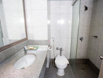 Душевые колонки бьют напором только по краям, середина пустая, поэтому когда встаешь под напор, вода попадает только на часть тела, в связи с чем по ванне надо немного побегать либо постоянно крутить колонкой. Зеркала моют не ахти. И что самое плохое, в кондиционере мыши по ходу тоже отель устроили, лично не видел, но слышал. И на соседнем здании этого отеля на крыше встретил один экземпляр.
