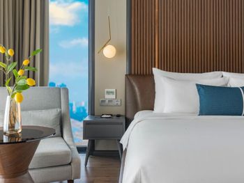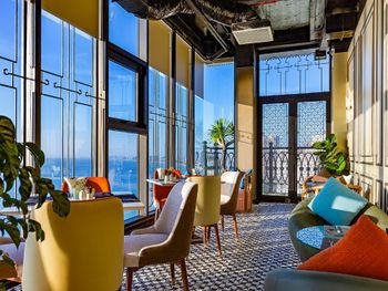 Номер на высоком этаже с панорамными окнами в пол. Бассейн на крыше. Бар на крыше. Завтраки норм. Приятный бонус - afternoon tea.