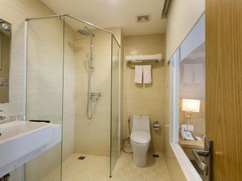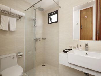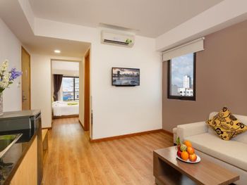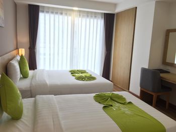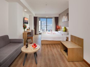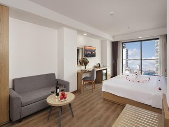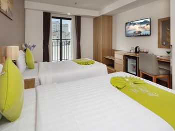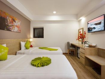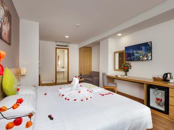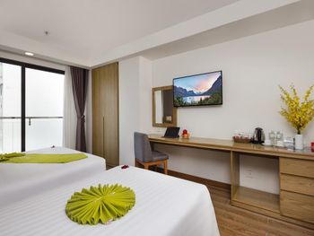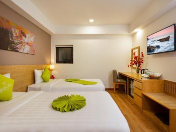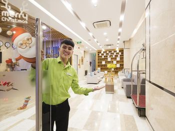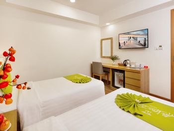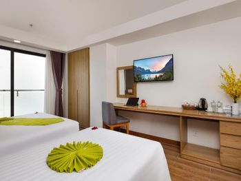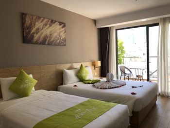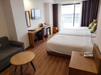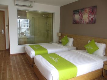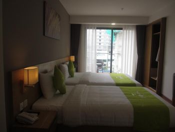 Свежий, чистый, ухоженный отель. По азиатским меркам так вообще) нам предоставили кроватку для ребенка, есть цокольный этаж с лифтом , удобно для родителей с колясками, помогали, шли навстречу, персонал на ресепшене говорит и по-русски и по-английски, расположение близко и к центру города и к морю. У нас был очень просторный номер с окном и балконом, рабочей зоной. Балкон конечно чисто номинальный, 30*50см максимум)) но хватало чтобы посушить вещи.