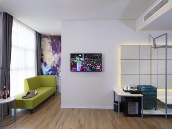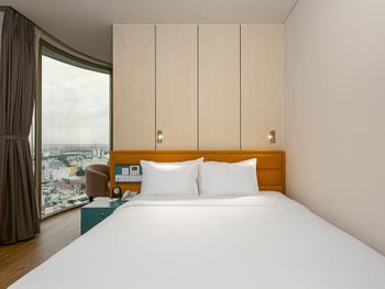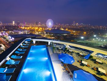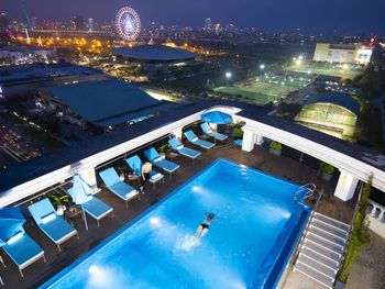 Отель расположен около парка развлечений. Красивый вид на город. Дружелюбный персонал. Бассейн на крыше.