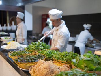 В ресторанах отеля подаются блюда местной кухни, а также блюда других азиатских и западных кухонь. В баре Daknan и баре на крыше отеля Non Nước можно заказать прохладительные напитки. В отеле осуществляется доставка еды и напитков в номер.Расстояние, указанное в описании, рассчитано с помощью © OpenStreetMap