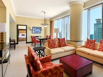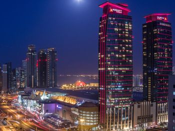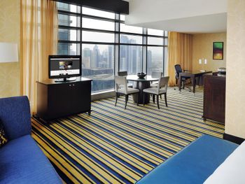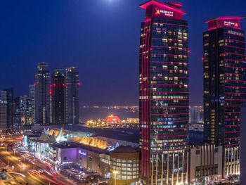 Почувствуйте себя знаменитостью благодаря великолепному сервису в Marriott Marquis City Center Doha HotelМы работаем над переводом этого описания на ваш язык. Приносим извинения за неудобства.Centrally located in Doha\'s West Bay, this 5-star deluxe hotel offers spacious rooms and suites overlooking the glittering Doha skyline or the Arabian sea. Hotel is directly connected to the City Center Mall with over 250 local and international brands for shopping Cinema and Entertainment. Enjoy urban living in the most convenient location in the city and indulge in the range of amenities provided, including a tea/coffee maker, mini-bar, and a well-equipped private bathroom.