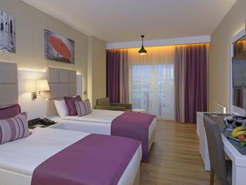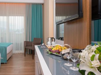 Море близко, через туннель под дорогой. Место спокойное, вечером интересно побродить по улочкам. Это городской отель поэтому территория небольшая, точнее ее нет. Отличный бармен Эрди на втором этаже в снек-баре: из приготовления напитков устраивает шоу. Официанты в лобби скорее нейтральные. Рядом автобусная остановка, хотя они там очень часто расположены.