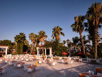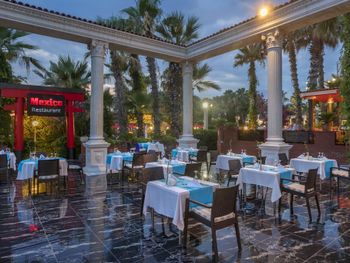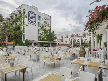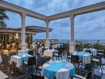 В ресторане отеля Club Sera, из которого открывается панорамный вид на Турецкую Ривьеру, подают различные блюда интернациональной и турецкой кухни.