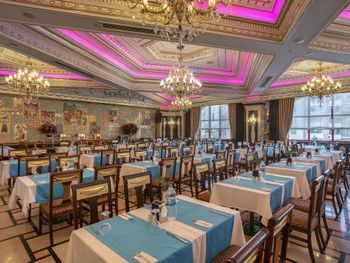 Еда так себе, выбор не большой. Напитки - это пить невозможно, не понятно как они это делают, но то что предлагается в качестве вина им не является совсем. Хуже отеля представить сложно. В нем устарело всё, мебель, вид, концепция. Персонал не дружественный.