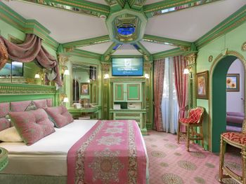 Комната отвратительна, везде зеркала, спишь как будто в шкатулке, отражаешься в сотне зеркал. Комната уставшая, в ванной везде отходит герметик, верхний душ не работал.