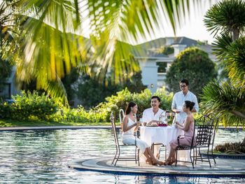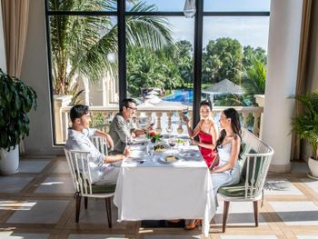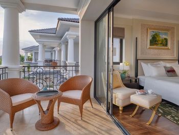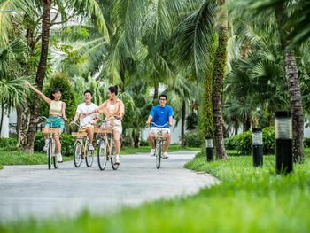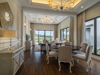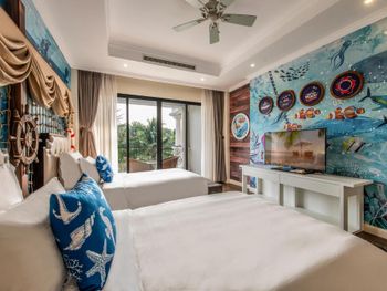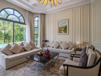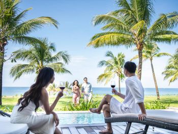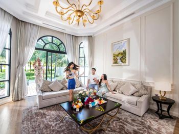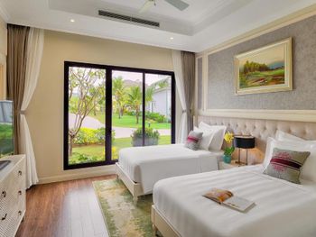Классная территория утопающие в пальмах, чистая огромная ухоженная территория, пляж чистейший широкий, безлюдный вход в воду и безумной красоты закаты. Огромная вилла просторная. Завтраки самые стандартные, красной рыбы нет совсем, и повара при просьбе приготовить яйца без половника масла, вступоре, зачем целый половник масла для омлета и яиц. Обслуживание в номере комфортное еда по меню не дорогая и вкусная, хороший массаж в спа за не большие деньги. Платные виды спорта по очень приятным ценам или мы после Тайланда сильно были поражены ценой и качеством. Детский клуб тоже оставил приятные впечатления, приятный персонал и можно оставить от мелкого возраста деток и детская площадка симпатичная. Удобно рядом фудкорд у казино, вкусные рестораны красивая территория и что шикарный плюс от парка аттракционов в котором совсем нет очередей, даже фаст трек не нужен . Вьетнам оставил сильно приятные впечатление, впервые от Азии ник чему придраться.