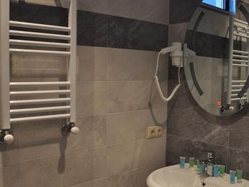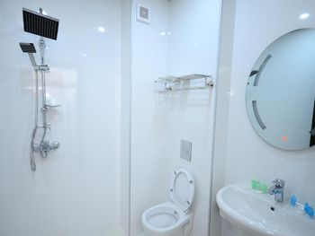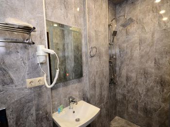 1. Огромный минус-душевая, которая не отделяется ничем от слова совсем. Мы приняли душ и абсолютно ВСЯ ванная комната стала мокрой, по полу невозможно ходить.