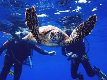 Тут мы видели черепаху, каждый день тут кормят скатов и акул.