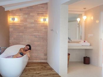 В целом у нас был достаточно комфортный номер - спали как убитые, постель очень удобная, в номере гардеробная с двумя большими зеркалами. Великолепный душ под открытым небом в номере.
