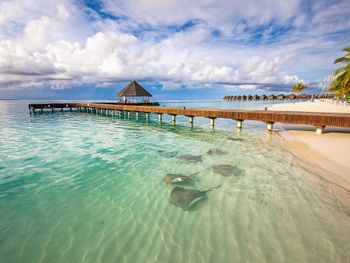 Отдых на острове понравился, вода очень красивая. Риф с рыбками местами начинается в 2 шагах от входа в воду поэтому поплавать могут и взрослые и дети.  На водной вилле жили 5 дней, хотя наверное было достаточно пару ночей провести для красивых фото. Идти до ресторана по жаре не очень комфортно.