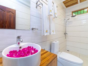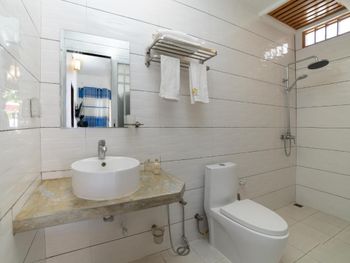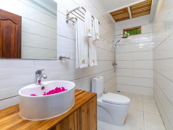 Изначально дали не тот номер, который бронировали. На двоих взрослых и двоих детей 11 и 12 лет дали номер фактически двухместный.  Предложили номер больше, но с доплатой. Это была первая махинация, с которой мы столкнулись в этом отеле. Номер был на втором этаже, спать было просто невозможно, т.к. все пребывание на острове был сильный ветер, входная дверь, дверь в ванной и балконные двери ходили ходуном и стучали. В душе вместо окна просто рваная сетка. Ванная стоит просто для красоты. Воду набрать не представляется возможным. Лестница на второй этаж постоянно в песке, никто не убирается. Вторая махинация, с которой столкнулись в данном отеле-навязывание трансфера. Видимо у них имеются договоренности с перевозчиками. Сотрудник отеля Али как выяснилось нагло соврал, что государственный паром отменён, и спидбот, который должен идти в обед может не придти. В итоге пришлось уезжать в 6.30 утра, видимо это было сделано, чтобы мы не застали общественный паром. Татьяна и Вероника