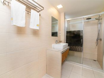 Очень понравилось расположение, отличный номер, светлый и чистый. Единственное что было странно - в ванной комнате был душ(отличный) и ванна, которая вообще не работала (вода не подключена), зачем так сделали - непонятно.