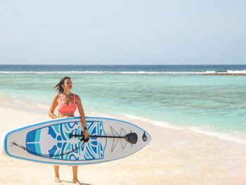 Но бикини пляж разочаровал-на пляже стёкла, без коралловых тапочек в море не зайти, сразу же начинаются мертвые кораллы.Тест на ковид нам обошёлся за 80$ на человека и на ребёнка тоже. Оплату за пцр-тесты принимает сам отель, что очень странно и делают его в госпитале поблизости. На острове есть карантинный отель с таким же названием, если у вас обнаружат положительный результат на ковид, вас будут удерживать на этом острове в этом отеле за свой счёт 14 дней. Бронировали семейный номер, но он был занят. И нам дали 2 отдельных номера. Телевизоры не работали, висят для видимости, сейфы есть, но не прикручены-пользоваться ими невозможно. На 2 этаже есть ванна, но наполнить её не смогли, т.к. нет горячей воды. Есть горячая вода только в душе и то не всегда. Матрасы и подушки не удобные. Взяли ужин при отеле, очень дорогие цены, за 1 блюдо хотят 10 $, но они того не стоят. Брали пасту с тунцом, пасту с курицей, рис с тунцом.Порции маленькие, макароны обычные, тунца мало.Муж взял молочный коктейль-принесли 100мл за 8$!Ужин вышел на 45$.Не советуем есть при отеле. В кафешках поблизости намного вкуснее и дешевле. Остров очень маленький 500*600м, если вы не занимаетесь дайвингом и снорклингом будет скучно.