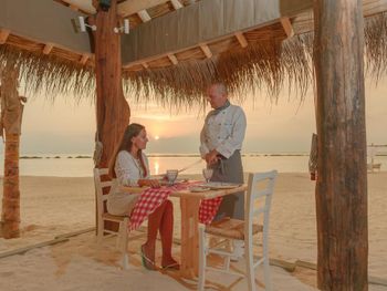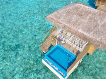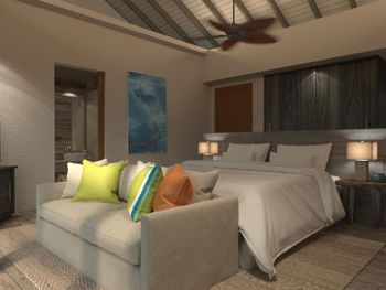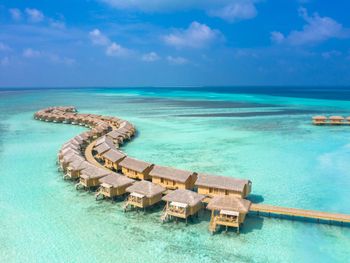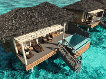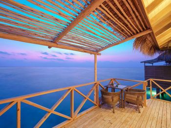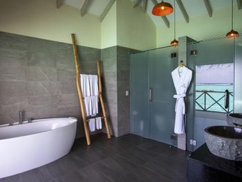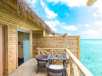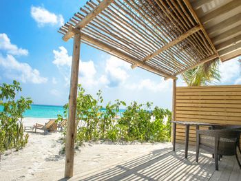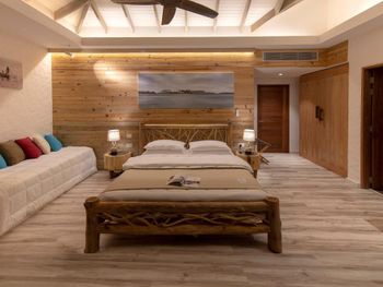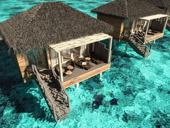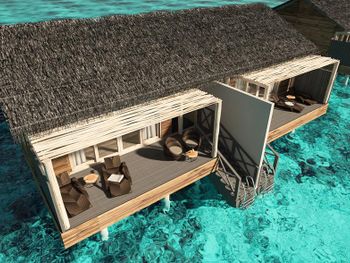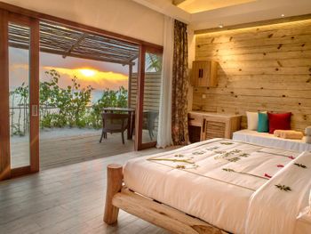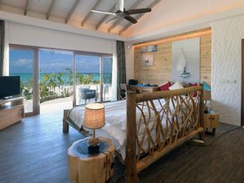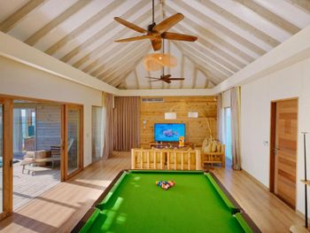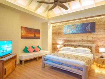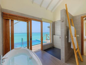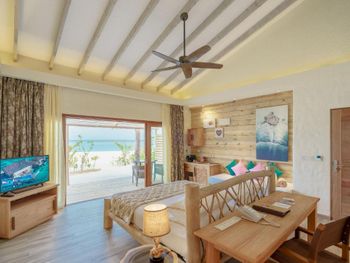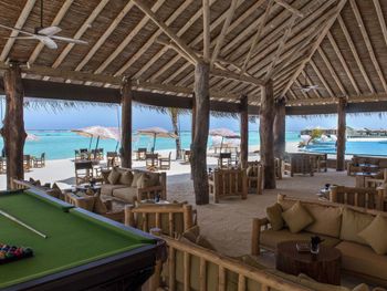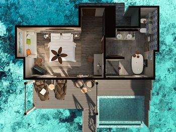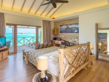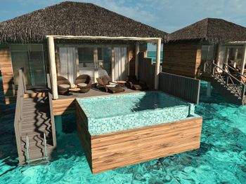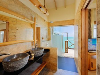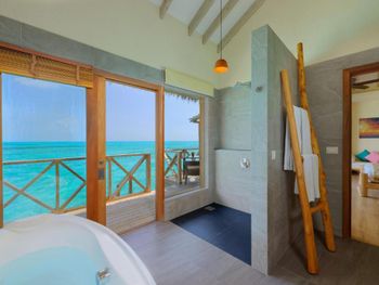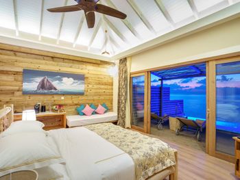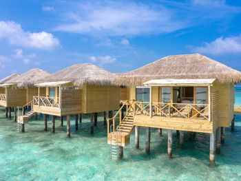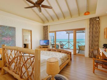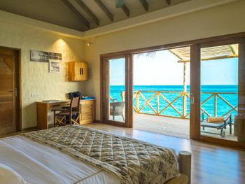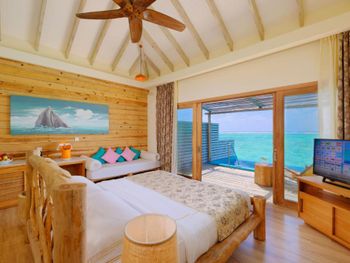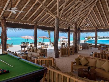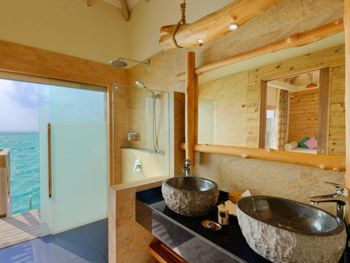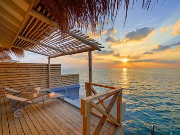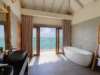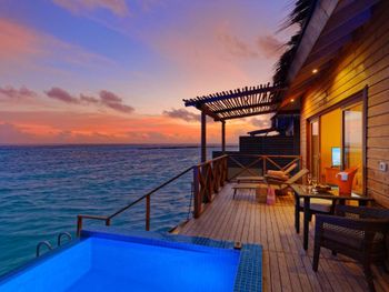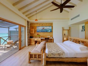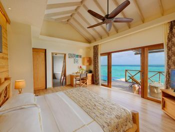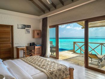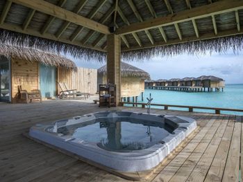 Попали на 4 дня в сумасшедшие дожди и ветер , в вилле на воде невозможно было спать, ветер в щели дверей задувал со звуками из преисподней которые к нашему отдыху не имели никакого отношения. 4 дня из 9 мы просто не спали, просьбу переселить или повысить категорию номера руководство игнорировало. На пляже песок в перемешку с ракушками которые впиваются в ноги, после массажа обещанное джакузи так и не заработало на третий день, забыли зубные щетки и пасту, в отеле 5 звёзд их тоже не оказалось , пришлось пойти в магазин и купить . Магазин совершенно бессмысленный, маленький и бесполезный . Нет рифа, снорклить негде, рыбок нет . Дайвинг пустой, дно бедное. В общем не советую этот отель, можно найти лучше и ближе , жаль что руководство этого не понимает .