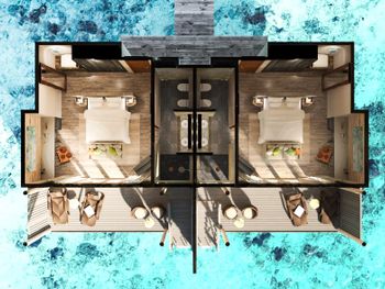 Брали виллу дельфин с бассейном. Это лучший выбор. Виллы манта расположены на ветреной стороне, обращены к пляжу, не так приватно + сдвоенные, с соседями через стенку. Также неплохие виллы Aqua Suite без бассейна. Такие же но с бассейном с близким видом на волнорезы (на вид буквально 5-6 метров) + рядом стоянка для гидроплана.
