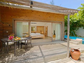 Отличный отель. У нас была вилла Дельфин с бассейном и видом на закат. Потрясающие виды, 100% приватность. Некоторые виллы выходили на пляж или перед ними были в примерно 10 метрах какие-то камни, наверное, волнорезы, но наш вид был идеальным.