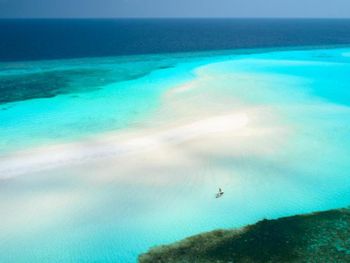Довольно мелко, поэтому поплавать в полном смысле этого слова не получится. С одной стороны острова все дно усеяно кораллами, интересно разглядывать, но когда ты идешь несколько сот метров по колено в воде, не совсем понятно, как это разглядывать - так как не очень удобно плыть на такой мелкоте. Риф (ради которого и приезжают на Мальдивы) в непосредственной близости от острова не производит впечатления - надо плыть на катере, чтобы увидеть по-настоящему интересный риф. Но персонал дайвинг-центра очень дружелюбный и профессиональный.