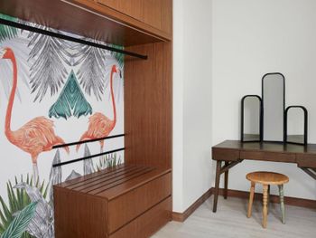Высокий уровень номера - хороший дизайн, очень качественно продумано наполнение полезностями - тапки, гладильные доски, фонарики, зонты и пр. - все очень достойно.