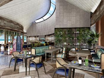 При отеле работает 6 ресторанов и баров. Tabemasu — один из ресторанов, где есть стойка теппаньяки и меню омакасэ. В ресторане Turquoise предлагается широкий выбор блюд: от интернациональной кухни до местных деликатесов. Бар Riviera, предназначенный только для взрослых, представляет собой пляжную игровую площадку с панорамным бассейном на берегу океана и частным пляжем.