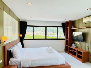 Отель расположен в хорошем месте. Мы уже знаем Патонг и для нас он был расположен удобно. До пляжа идти минут 15-20, идете от отеля влево до Красного мостика переходите дорогу, через мостик прямо по переулку до отеля РОК КАФЕ далее по улочке прямо до пляжа. Отель не большой но уютный, чистый, ночью было очень тихо, никто не орал и не хлопал дверями. Сам номер не большой но для двоих комфортно. В ванне проточный нагреватель помыться можно есть гели для душа. Есть сейф. Очень большая кровать, с хорошим матрасом не сильно мягкий, но и не жесткий, постель белая чистая без пятен, полотенца белые, чистые, не рванные. Уборка каждый день. Вид из окна потрясающий на горы и город. Очень хороший персонал, всегда улыбчивые и гостеприимные. Уборка номера хорошая.