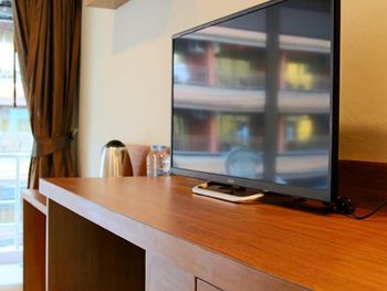 При заезде забирают паспорт в качестве депозита.Окна выходят либо на дорогу, либо в огород, где гуси и куры орут круглосуточно.Полотенца рваные.Номер маленький, не соответствует описанию, не 30 кв.м.(был номер делюкс)Пляжное полотенце-залог 200 батт.До банглы далеко,мин 25, до патонга мин 15. Стены тонкие, слышно все! При оплате картой, 3% комиссия.