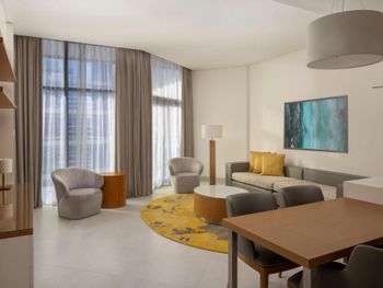 Просторные чистые апартаменты, все на хорошем уровне. Отель разделен на несколько зданий, апартаменты находятся не в основном здании, зато там значительно спокойней. Доставка Deliveroo работает прямо до двери номера. Все сервисы отеля доступны - room service, консьерж и т.д. Хорошие завтраки. В целом сервис понравился.