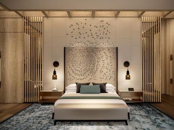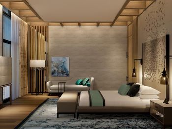 В отеле 327 роскошных номеров и ​​люксов и ​​13 вилл на пляже с современным элегантным декором. К услугам гостей номера разных категорий, в том числе представительские клубные номера Rotana с дополнительными привилегиями и индивидуальным сервисом.