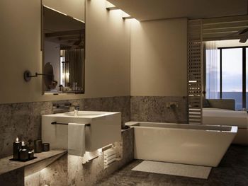 Отель расположен на острове Саадият, рядом шикарный пляж с белым песком. Номер просторный