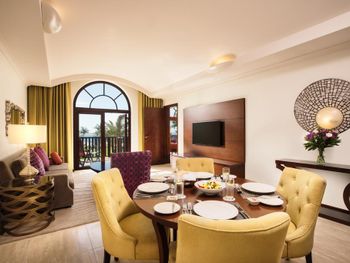 Последний раз были в этом отеле 10 лет назад. На сегодняшний момент отель «сдал» позиции по сервису. Номера требуют косметического ремонта. И для 5***** можно и полотенца в номерах обновить, и убираться лучше не только в номере, но и на террасе. Заезжали в 2 часа ночи, и номера не были готовы: кроватей для детей не оказалось, хотя несколько раз созванивались непосредственно с отелем перед заездом. Основной Ресторан La Fontana, где завтракают все отдыхающие, не готов обслуживать большое количество посетителей- были очереди ( связано это с требованиями санитарных норм при COVID, убрано 1/3 столов, соки- кофе- воду приносят официанты подолгу, вся еда за стеклом- ее накладывает повар), да и само меню шведского стола- очень ограничено и без фантазии, и честно говоря, просто не вкусно((( совершенно не продумано меню для детей 1-2 года. К концу отдыха узнали, что есть хлопья с молоком, но их надо заказывать у официанта. Поэтому если неделю отдыхаете- потерпеть можно, но за 2 недели становится тоскливо. Ещё один минус - удаленность отеля от Дубая. Раньше три раза в день ходил бесплатный автобус, но из-за карантина его отменили. Такси дорого, и заказывать лучше заранее, если планируете куда поехать. Семью из 4 человек в одну машину могут не посадить- опять требования при COVID. Мы букировали отель только на базе завтраков, но потом доплатили за ultra all inclusive - выгоднее, т к мороженое- вода- пиво-практически все питание во всех ресторанах отеля. На территории два маленьких магазинчика «часы- трусы», а ближайший Carefurе в 20 мин на такси. Кстати, есть приложения для заказа такси -Careem- надежнее, нежели заказывать через отель. Поэтому, семьи с детьми, думайте сразу о подгузниках, кашах и т д. В принципе, если быть готовым ко всем этим этим «минусам», то они вам не помешают отдохнуть))