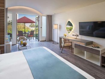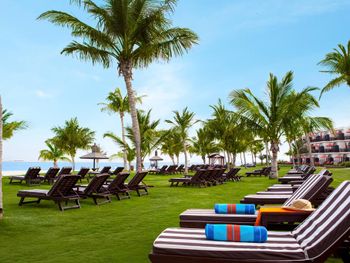 Большая ухоженная территория. Для нас это было определяющим фактором. Комфортные большие номера. Не было проблем с лежаками. Большой собственный пляж. Море чистое. Павлины, гуляющие по территории, как куры) Гольф клуб. Дорожки для прогулок и бега вокруг гольф поля. Услуги для перемещения по территории на багги. Хорошие рестораны по системе La Cart : азиатский, индийский, итальянский ( бронируйте сразу себе ужины в них на все время отдыха). Ресторан На пляже Capitan’s . Отдыхали в 4 большие семьи с детьми, и администрация поселила всех рядом. Рядом Lego land и вся развлекательная деревня)) на территории отеля все в масках, а вот в бассейне все те же , но без масок😉 солнце очень «горячее» - крем не менее 30-50.