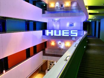 Hues Hotel has a buffet restaurant serving a variety of international dishes . Guests can relax in the modern lobby with a variety drinks serves at our lobby café .