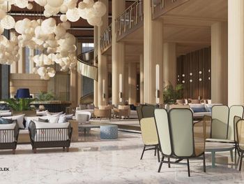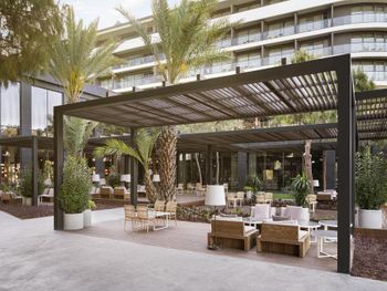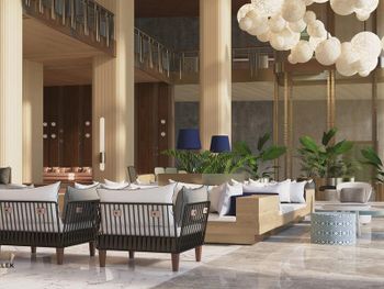 Хорошая территория отеля. Много уютных мест. Достаточное количество лежаков на пляже. Приятное лобби.