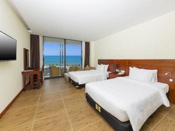 Расположение отличное, на первой линии с шикарным и чистым морским берегом, отличный вид с балкона номера.