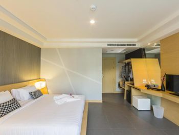 Большой номер. Несмотря на то, что окна выходили на улицу, было не шумно. Из окон отличный вид. В номере были зонты и пляжный коврик. Ночной рынок недалеко.