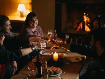 Персонал, обслуживание, приехали поздно пропустив ужин. Но пошли на встречу и накрыли стол на 10 человек.