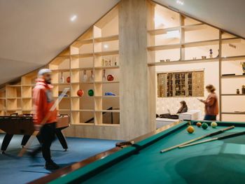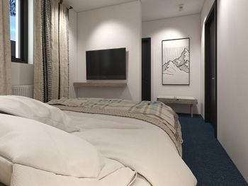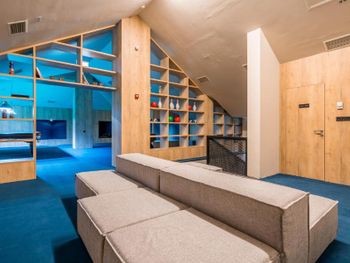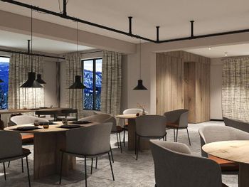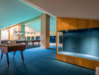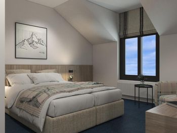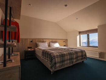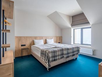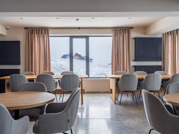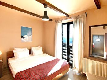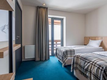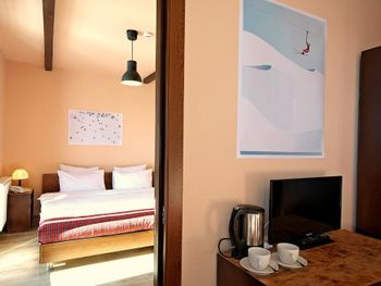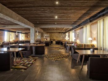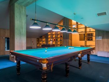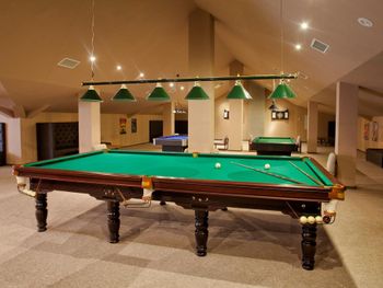 Гостиница очень хорошая в части удобств: новый ремонт, игровая зона с бильярдом, теннисом. Очень уютный ресторан на цокольном этаже с камином. Бугельный подъемник рядом с гостиницей по которому можно добраться до основных трасс.