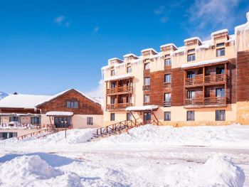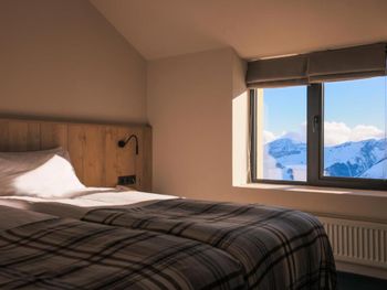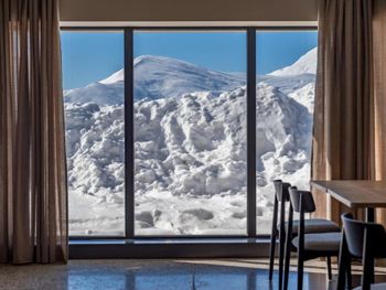 Расположена прямо у склона. К отелю и от него можно уехать на лыжах.
