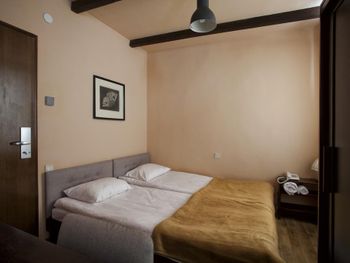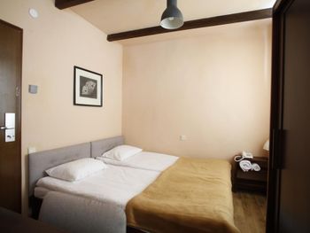 Плохая звукоизоляция, расположение на отшибе, рядом бугель, но добраться от него до кресельного подъёмника очень проблематично. Из ванной комнаты пахнет канализацией, приходилось постоянно держать вентиляцию включённой