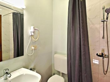 маленькие номера (успели пожить в трех ))) ), очень плохая звукоизоляция, слышно все, что происходит вокруг. в душе действительно не хватает полочки. ну и расположение - далековато от тусовки, добираться только на такси, примерно за 20 лари.