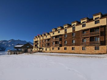 В отеле есть очень крутой ресторан с камином, бильярд и другие развлечения. Подъёмник у них свой, бугель. От него можно доехать до кресельного. В целом все понравилось, но если хочется вечером танцевать и ходить по барам удобнее останавливаться в новом Гудауре.