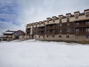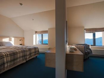 Приехали на арендованой машине но так к самому отелю из за снега не смогли доехать ни разу. Когда мы спросили на ресепшн где можно оставить автомобиль нам ответили что они не знают. Авто бросили прямо на дороге так как больше вариантов нет. Багаж нам подняли в отель за 8 дол. Хотя при выезде спустили бесплатно. Арендовать снаряжение можно далеко за пределами отеля и с этим оборудованием пешком нужно долго подыматься в отель. Камера хранения присутствует. После каталки все развлечения в отеле так как добраться куда либо проблематично но их там не много . Особенно что не понравилось что когда мы попросили переселить в смежные номера нам сказали это платно и когда мы согласились нам все равно это не удалось. В день заезда нас покормили ужином только после небольшого скандала так как добрались поже срока ( 2 часа парковали авто и это повезло) Завтрак и ужин (входило в стоимость) не очень но вкусно можно поесть в ресторане