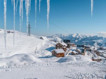 Крутой подъем к отелю, который плохо чистят, после снегопада без цепей не на полном приводе не заехать. У подножия надели цепи и после сильного снегопада на Nissan micra смогли заехать.