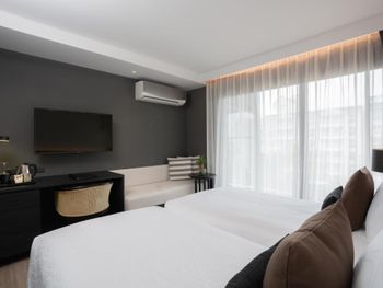 Хороший интерьер номера, разнообразный завтрак. Есть бассейн на крыше и собственный выход к пляжу. Хороший интернет в номере. Бесплатный паркинг. Бесплатная питьевая вода. Выдают пляжные полотенца.