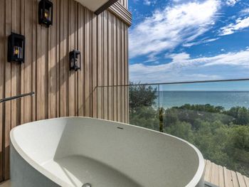Отель, инфраструктура, номера, ванна на балконе, бассейн на крыше